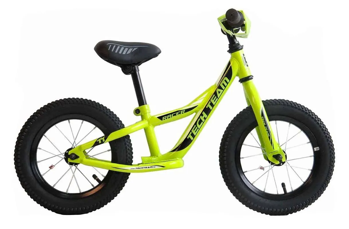 Беговел Tech Team Racer. Надувные колеса, диаметр 30 см. Ширина руля 46 см. Площадки для постановки ног с специальным антискользящим покрытием. Регулируемый по высоте руль, высота от земли минимальная - 50 см., максимальная - 55 см. Регулируемое по высоте сиденье, высота от земли минимальная - 35 см., максимальная 45 см. Длина беговела - 83 см., расстояние между осями колес 53 см. Вес: 5.00 кг.