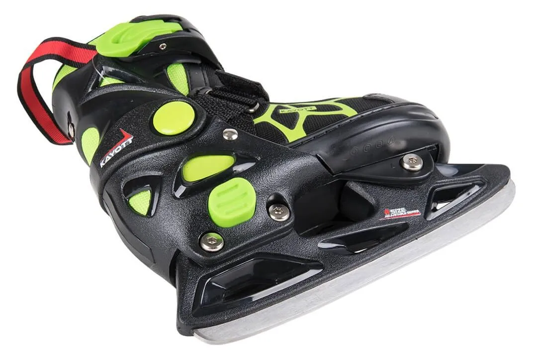 Ну и конечно стоит добавить, что эти коньки будут расти вместе с ребёнком, увеличивая свой размер по мере необходимости: конструкция мягкой части телескопическая, раздвигается вперёд без зазора, а каждый размерный диапазон рассчитан на 3 размера. Коньки укомплектованы сразу заточенным лезвием, про профилю сходным с хоккейным, имеют небольшую дугу по длине и скругления спереди и сзади.