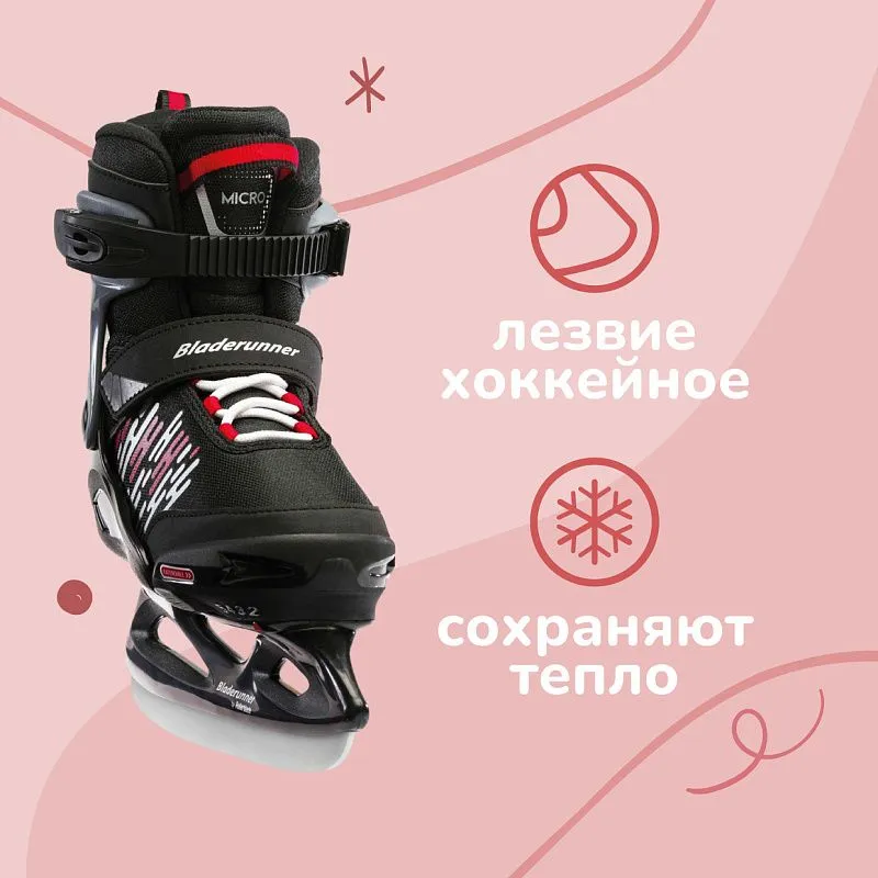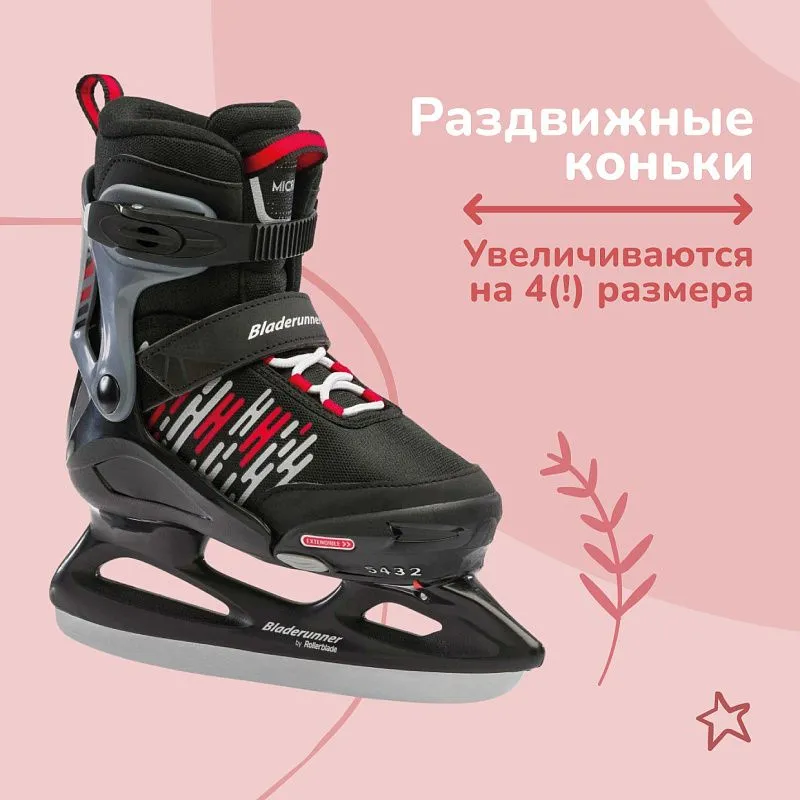Коньки Bladerunner Micro Ice - детские раздвижные коньки, которые растут вместе с ребёнком. Простая и надежная в использовании кнопочная система позволяет раздвинуть ботинок на 4 размера. Коньки могут использоваться на протяжении нескольких лет, а после перейти младшим братьям и сестрам.