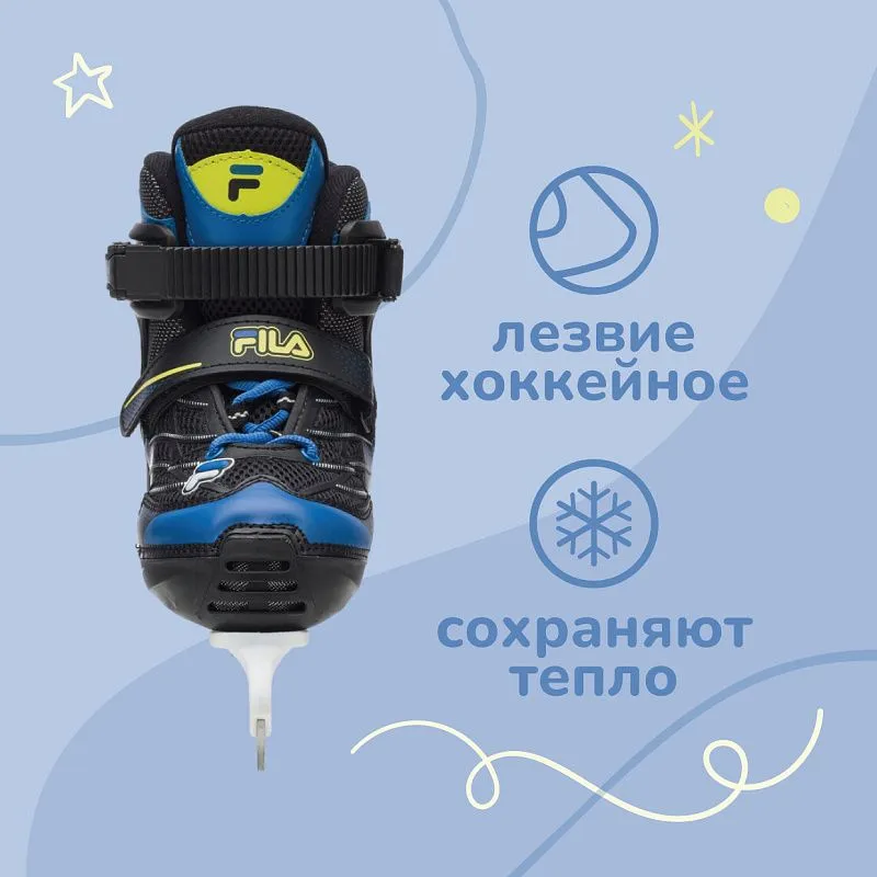 Fila X-one Ice - детские раздвижные ледовые коньки с хоккейным лезвием. Хорошо подойдут для мальчиков и девочек от 4 лет со стандартной или чуть шире стандартной стопой.