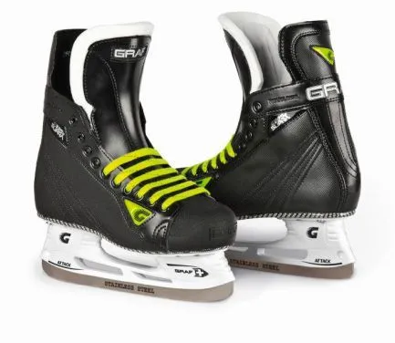 Любительская модель Graf 135 S. Конструкция боковин со специальными ребрами жесткости - обеспечивает высокую жесткость ботинка и защиту от попаданий шайбы. Внутренняя, стойкая к истиранию, отделка ботинка. Усиленный и стойкий к излому задник ботинка. Пластиковая подошва. Стакан Graf Attack Seven 77. Гарантия 30 дней.