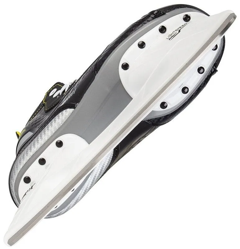Ботинок коньков изготовлен с использованием поликарбонатов. Он отлично держит ногу и обладает хорошей гибкостью и комфортом. Дополнительный плюс - плотный язычок для защиты кости. "S" лезвие из нержавеющей стали прекрасно держит заточку и обладает хорошей износостойкостью и долговечность.