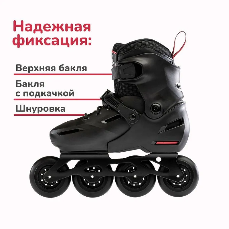 Специально для этой модели был создан новый детский внутренник с дополнительным антишоком, благодаря чему ролики обеспечивают отличную поддержку и защиту голеностопа. Шел роликов имеет много вентиляционных отверстий, что благополучно сказывается на комфорте при катании, особенно в жаркие летние дни. Стопа фиксируется с помощью: шнурков, верхней бакли и пяточной бакли с подкачкой, как у взрослых моделей. Сбоку имеется сменный слайдер для защиты боковины от протирания.