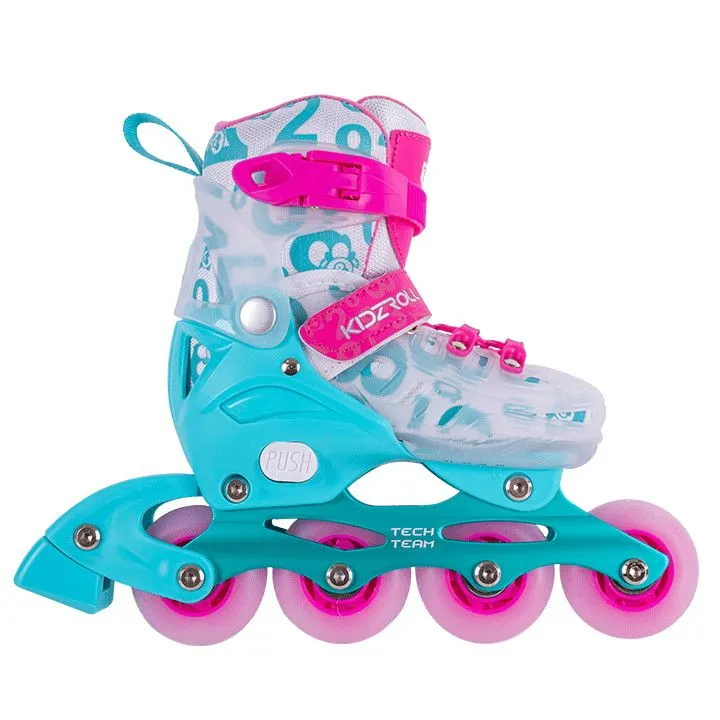 Tech Team Kidzroll - раздвижные детские ролики начального уровня с жестким ботинком снаружи и мягким внутренником внутри. Универсальны и подходят как для обычного катания так и для более серьезного обучения с тренером.