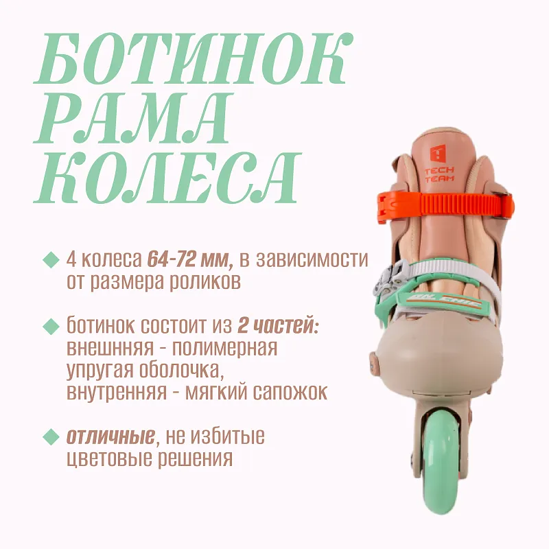 Представляем вам новую линейку раздвижных роликовых коньков для детей Tech Team On Chic 2024! Это свежая модель, которая призвана подарить удовольствие от катания на роликовых коньках тем, кто только делает первые шаги в этой активности. Традиционно для детских моделей, ботинок этих роликов, умеет расти вместе с ребёнком, увеличиваясь и раздвигаясь в сторону мыса на три размера, этого должно хватить на два активных сезона катания. Так же, что бы была возможность выбрать оптимальный диапазон исходя и фактического размера ноги, эта модель представлена в трёх размерных диапазонах: 28-31, 32-35 и 36-39. Но так делают ролики все известные бренды, а что же здесь нового? Принципиально всё!