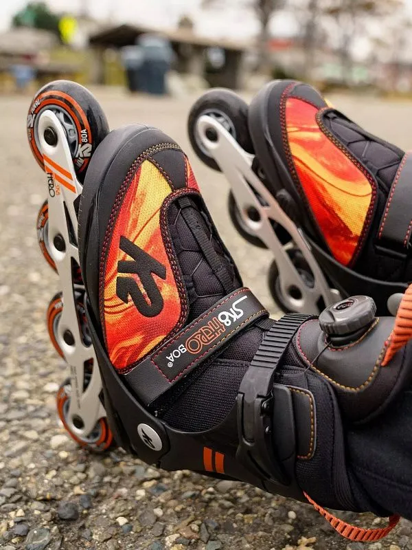 Увеличение размера за счет выдвигания носка. Стопа фиксируется с помощью системы быстрой шнуровки, пяточного ремня и верхней бакли. Сам ботинок очень мягкий и не вызывает дискомфорта даже после продолжительного катания. Ролики оснащены алюминиевой рамой с колесами 76мм.