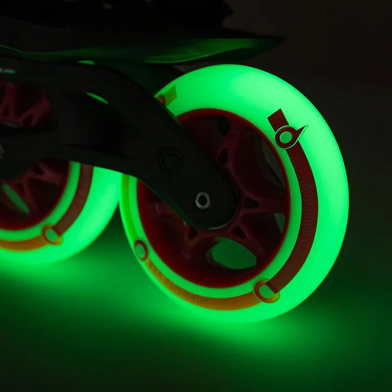 Но эти ролики не просто про комфорт трансформации из роллера в пешехода и обратно, это ещё и по настоящему быстрые городские ролики! Они используют крупные колёса скоростного формата, их диаметр 90мм, а плотность бесшумной полиуретановой шины универсальна - 83А. Такое соотношение параметров благотворно сказывается и на скорости - колёса крупные и не проваливаются в неровности, и на мягкости качения и контроле - средняя плотность колёс снижает вибрации от плохой поверхности и улучшает сцепление с ней.
