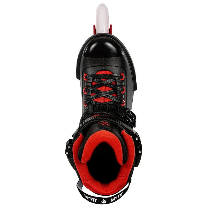 Next Black Red 110 - шустрые роликовые коньки для фрискейт катания. Они быстрые и индивидуально настраиваемые. Трудно не быть замеченным, когда вы катаетесь на ярком трехколесном буте.