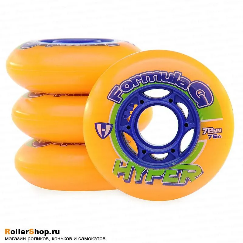 Колеса Formula G от Hyper диаметр 72мм., жесткость 76А. Подойдут для игры в хоккей на роликовых коньках в зале.