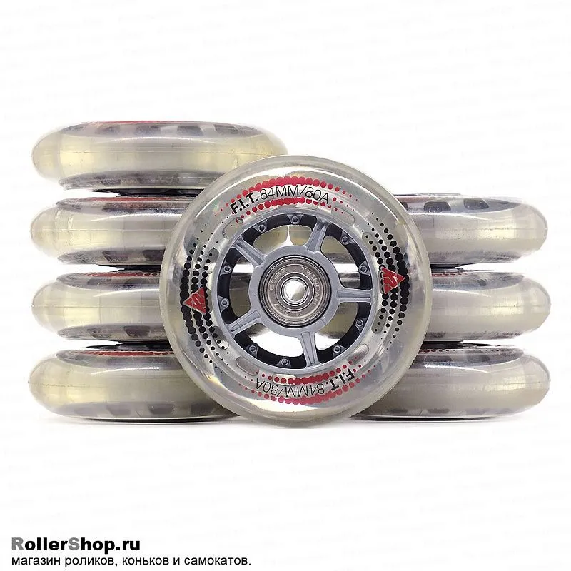 Колёса 84/80A + ILQ7 + алюм.втулки 6мм, 8 шт. Колеса готовы для установки на ролики.
