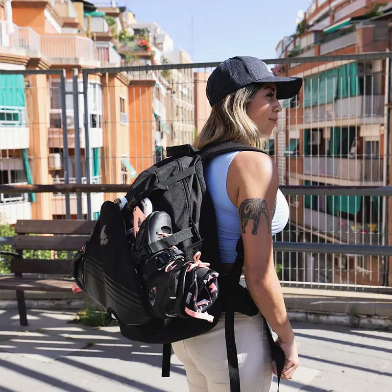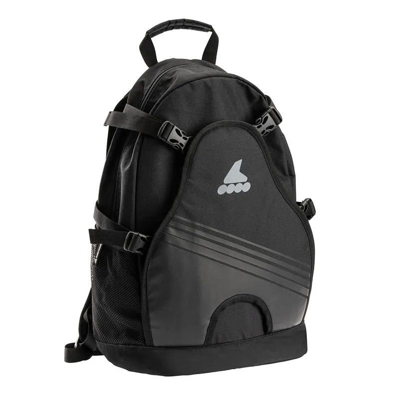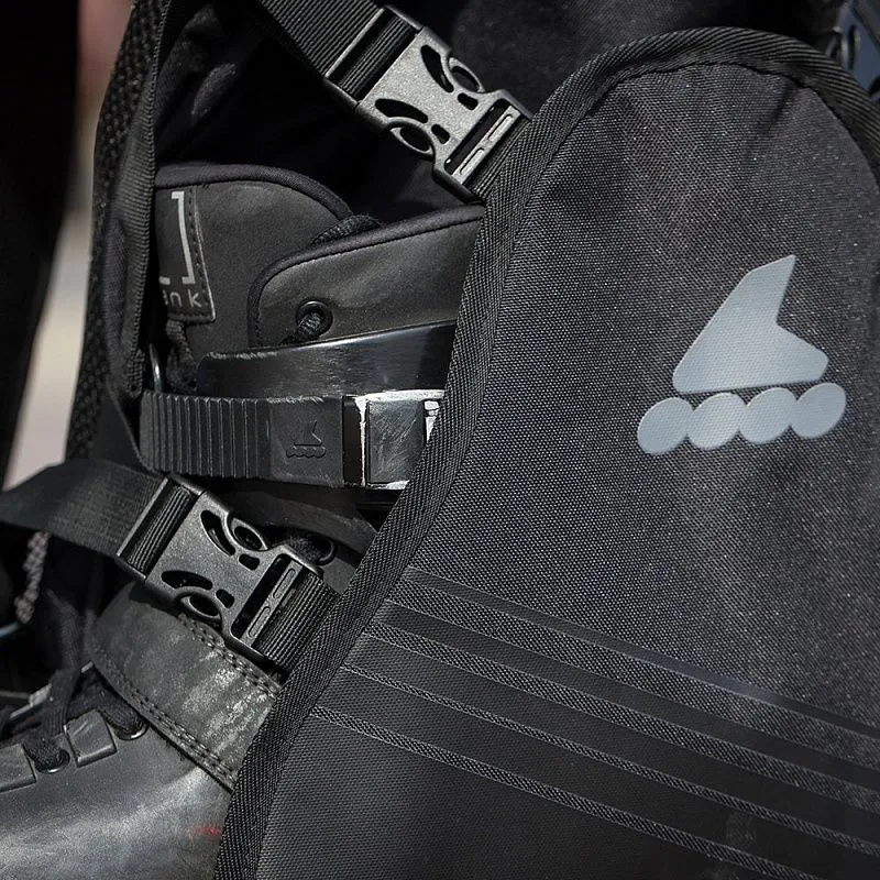 Оснащён внешней системой для транспортировки коньков и роликов. Спинка и плечевые ремни мягкие и обеспечивают повышенный комфорт и вентиляцию. В нижней части прорезь для тормозной колодки, чтобы форма рюкзака оставалась правильной.