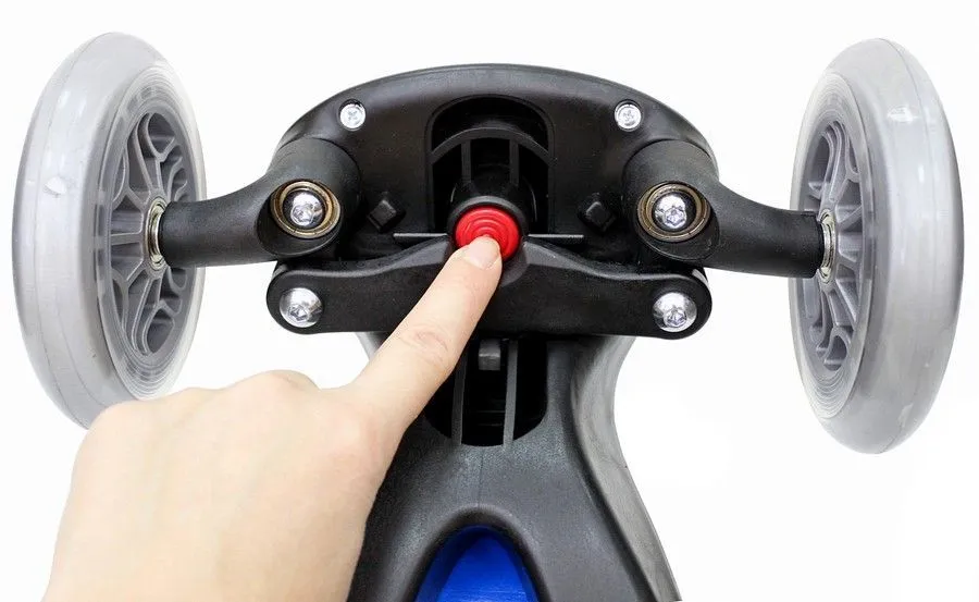 Принцип действия системы блокировки колес не изменился - достаточно просто нажать кнопку на передней части самоката. При заблокированных поворотах ребенку будет легче осваивать новый вид передвижения, научиться держать равновесие и правильно отталкиваться. Для разблокировки достаточно нажать красную кнопку на нижней части платформы.