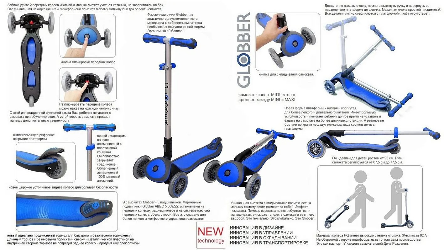 Globber Elite F My Free Fold up Dark Blue - подойдет для детей от 3 лет и старше. Модель 2017 года "Элит Ф" - по сравнению со своим предшественником "Глоббер май фри ап" этот самокат получил ряд улучшений: