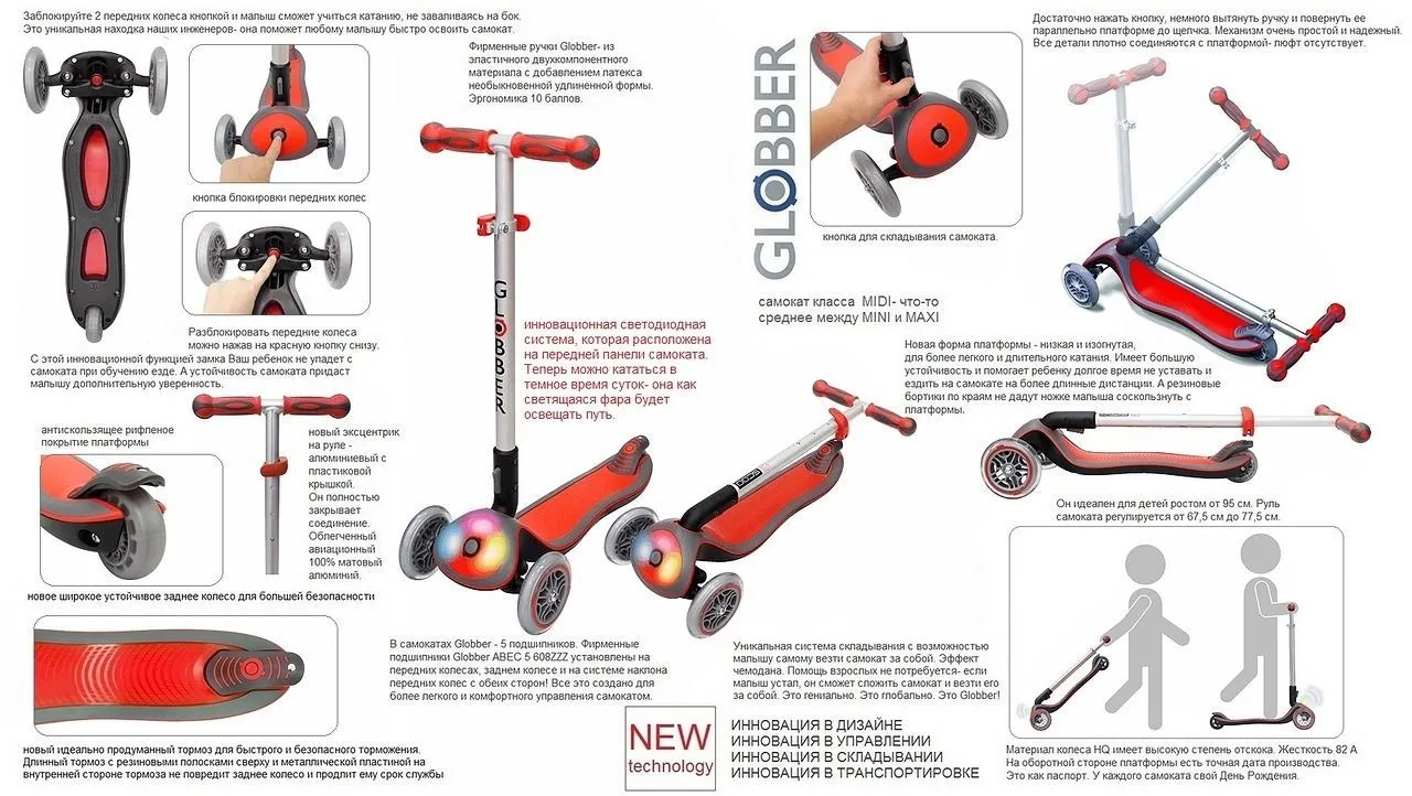 Globber Elite F My Free Fold up Red - подойдет для детей от 3 лет и старше. Модель 2017 года "Элит Ф" - по сравнению со своим предшественником "Глоббер май фри ап" этот самокат получит ряд улучшений: