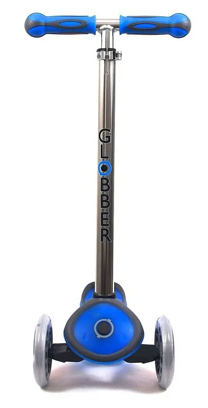Globber My free Up Lights – 3-х колесный самокат для детей от 2 до 6 лет. Особенность этого в самоката в возможности блокировки двух передних колес, что помогает юному райдеру в процессе обучения. Блокировка колес исключает возможность наклона руля и поворотов, что предотвращает падения и придает дополнительную устойчивость. Блокировка рулевых колес производится с помощью кнопки на передней части самоката. Разблокировка производится с помощью красной кнопки под площадкой самоката.