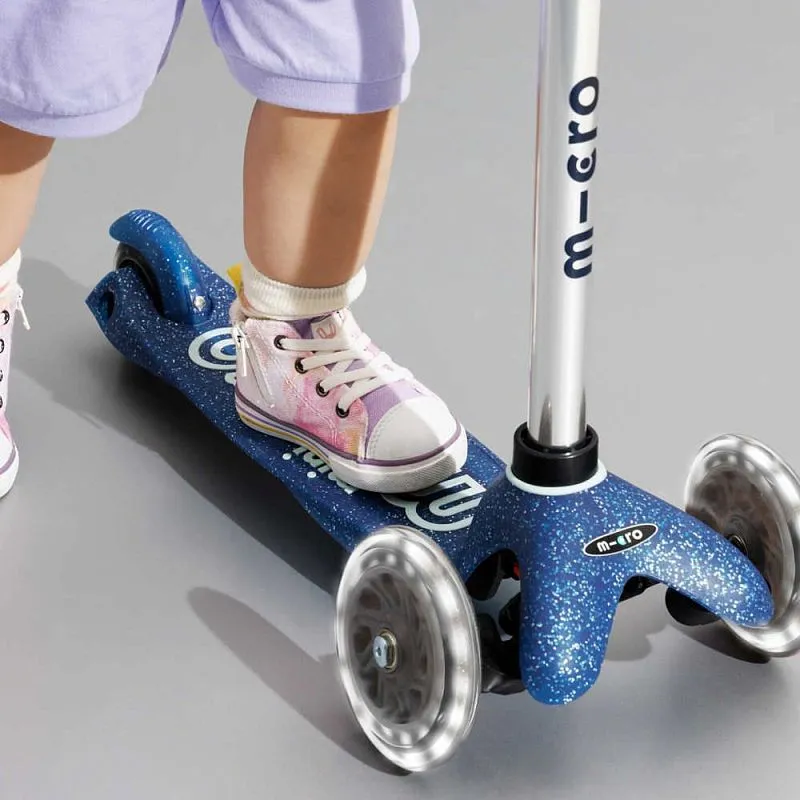 Трёхколесный самокат Micro Mini Deluxe Блестящий (галактика) LED синий (MMD219)