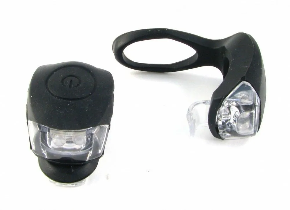 В комплекте передний и задние фонари с белым и красным светом. Два режима работы: постоянный свет, мигание. Сменные батарейки CR2032. Крепление подходит для диаметра 22.2 - 31.8 мм.