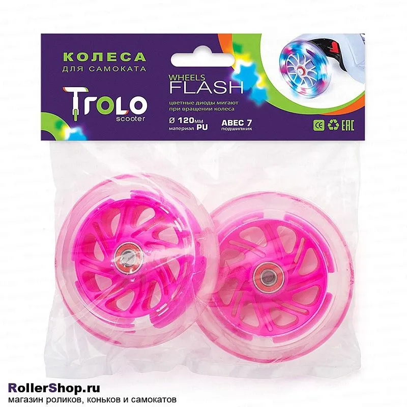 Trolo Набор колес для самоката 120 мм. Светящиеся, розовые. 2шт.