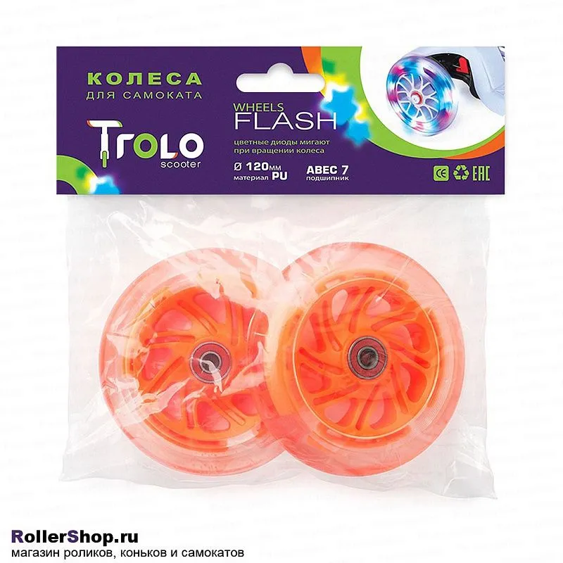 Trolo Набор колес для самоката 120 мм. Светящиеся, оранжевые. 2шт.