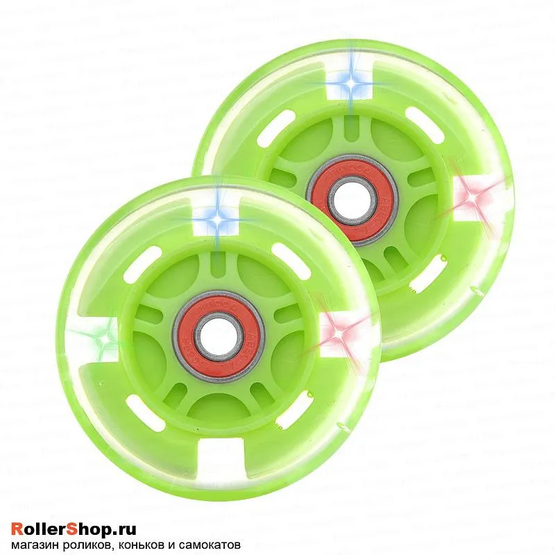 Trolo Набор колес для самоката 80 мм. Светящиеся, салатовые. 2шт.