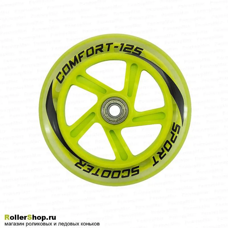 Полиуретановое колесо для самоката диаметром 125 мм. с прочной пластиковой ступицей. Комплектуется подшипниками Abec 7 с двумя стальными пыльниками.