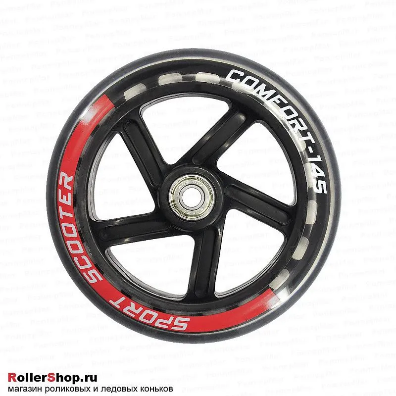 Полиуретановое колесо для самоката диаметром 145 мм. с прочной пластиковой ступицей. Комплектуется подшипниками Abec 7 с двумя стальными пыльниками.