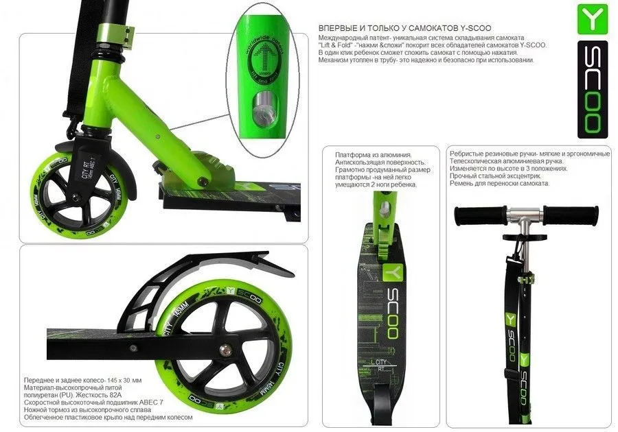 Самокат Y-scoo RT City 145 Hong Kong kiwi