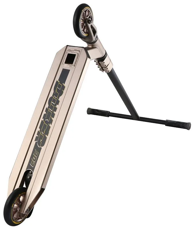 Модель хороша в качестве первого варианта для освоения и изучения простых базовых трюков. Классический Т-образный руль на SCS компрессии обладает достаточным запасом прочности, чтобы обучиться азам и основам.