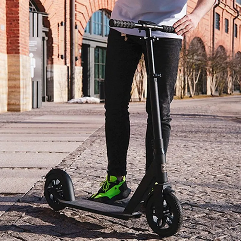 В базовой комплектации у самоката резиновые, цельнотелые, бескамерные колёса. Настолько мягкие, что трещины и мелкие камушки совершенно не заметны. С ними можно забыть про тряску, а насос навсегда оставить дома. Конечно, в сравнении с полиуретановыми колёсами, вариант с резиной едет медленнее. Поэтому, при желании, для большей скорости можно докупить оригинальный комплект колёс, например на алюминиевой ступице!