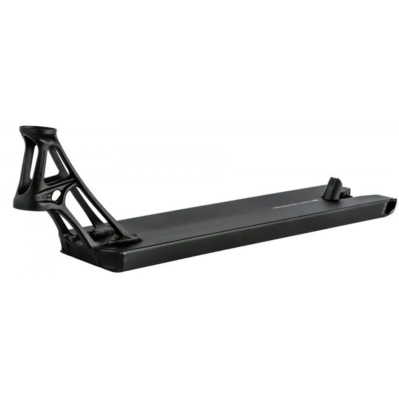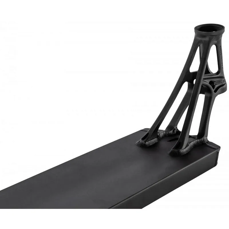 Несколько лет разработок и совершенствования привели компанию Ethic DTC к созданию одной из наиболее совершенных на данный момент стритовых дек. Полностью выполненная из алюминия марки 6068 и прошедшая закалку, эта дека обладает очень высокой отдачей, прочностью и наиболее низким весом при своих габаритах 580 х 140 мм. «Шея» деки - вынос рулевого стакана имеющая угол 83°, и сам стакан, выполнены одной единой деталью методом ковки. Применение этой сложной технологии позволило сделать металл ещё прочнее и придать ему необычную, привлекательную форму. Благодаря сложной форме удалось добиться значительного снижения веса без потери прочности.