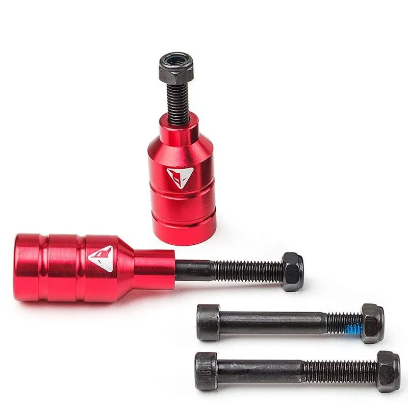 Пеги Фокс модель B передняя+ задняя. Пег (англ. - Peg) - небольшой кусок трубы, который крепится к оси колеса и служит для выполнения различных трюков и элементов экстремального катания. Подходит для большинства самокатов Fox Scooters, также совместим с некоторыми моделями других производителей.