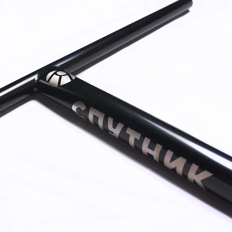 Титановый оверсайз руль Спутник-1 Титан Ti. Классическая Т-образная форма. Изначально без пропила. Подходит под SCS 34,9 мм без доработок и под HIC, если сделать пропил.