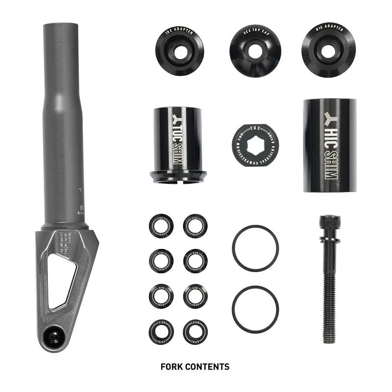 Вилка трюкового самоката Triad Conspiracy - одна вилка на все случаи жизни. Универсальная система под компрессии HIC, IHC и SCS. Совместима с колёсами шириной 24, 28 и 30 мм. Имеется конвертер на 12мм ось.