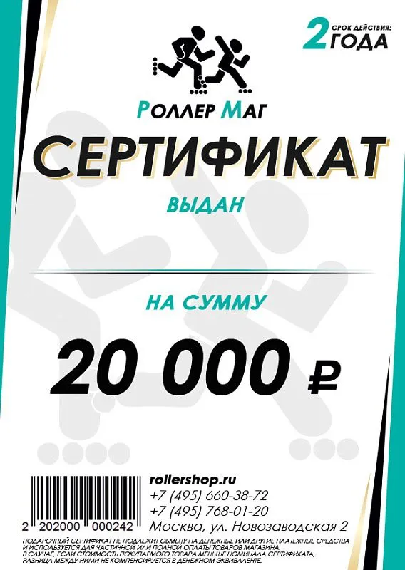 Сертификат Rollershop на 20`000 руб.