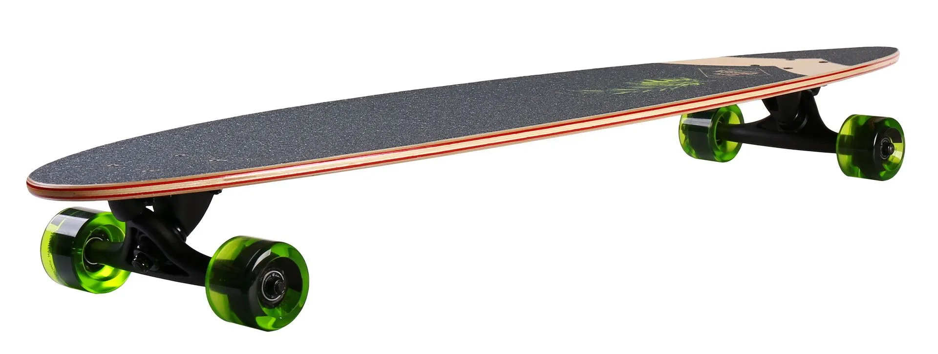 Дэнсинг – это катание с элементами танцев. Эта доска не имеет выраженных вздёрнутых участков на хвосте и носу доски (кик-тейлов), т.е перешагивая вперёд или назад вы не рискуете перевернуть свой борд. А ещё он достаточно широкий – 25” (25,4см) и длинный – 46” (117 см) для комфортного перемещения по деке, а значит, на нём можно танцевать! Прибавьте к вашему круизингу мягкие и плавные перемещения с носа доски к её хвосту, развороты и перешагивания со сменой ног, делайте это под музыку, создавая у окружающих впечатление танца!