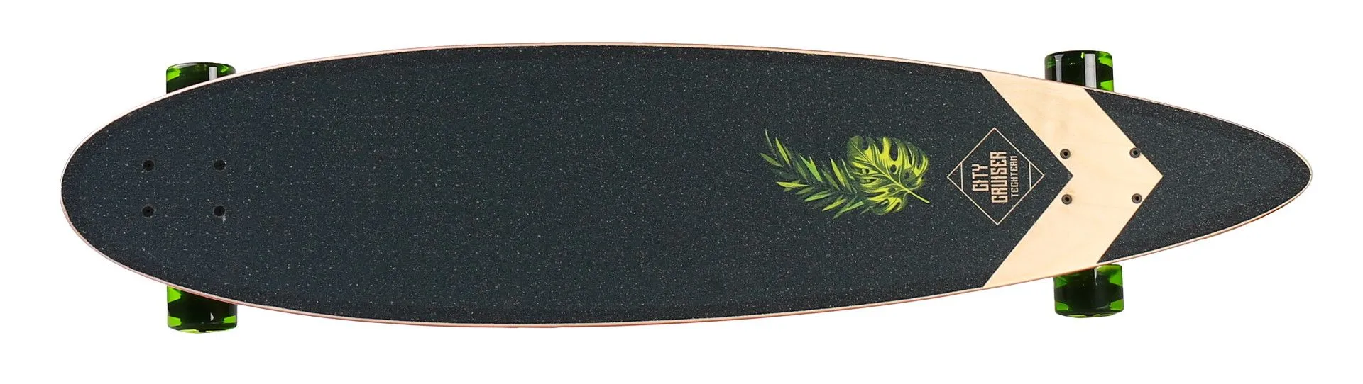 Tech Team City Cruiser 46" - классический лонгборд с декой "Пинтэйл", в форме рыбки, с хорошим балансом управляемости и устойчивости. Прежде всего стоит помнить что большая доска далеко не всегда предназначена для скоростного катания. Так и этот лонг наилучшим образом покажет себя в круизинге и дэнсинге.