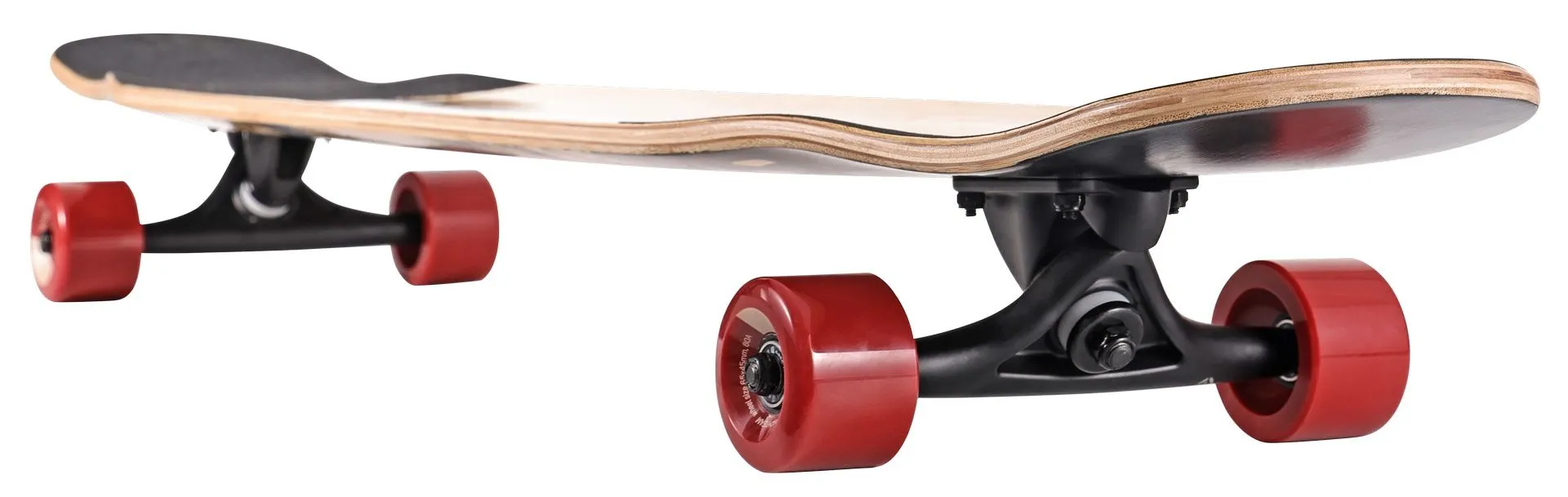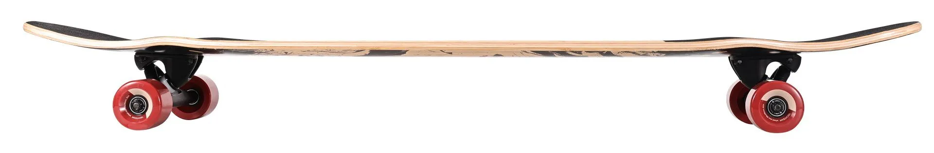 Дека размером 46" х 10" со средним конкейвом и двойным концевым загибом (double kicktail) идеально подходит для переступаний, вращений и постановки трюков. Верхний и нижний слои заменены на бамбук, что сделало доску заметно более упругой и живой при отталкиваниях и приземлениях. Основные 7 слоёв выполнены из клёна. Наждак с мелким песком расположен только в зоне носа и тэйла, а центральная часть деки остаётся открытой для комфортного танца, чистых переступаний и удобной переноски доски под мышкой.