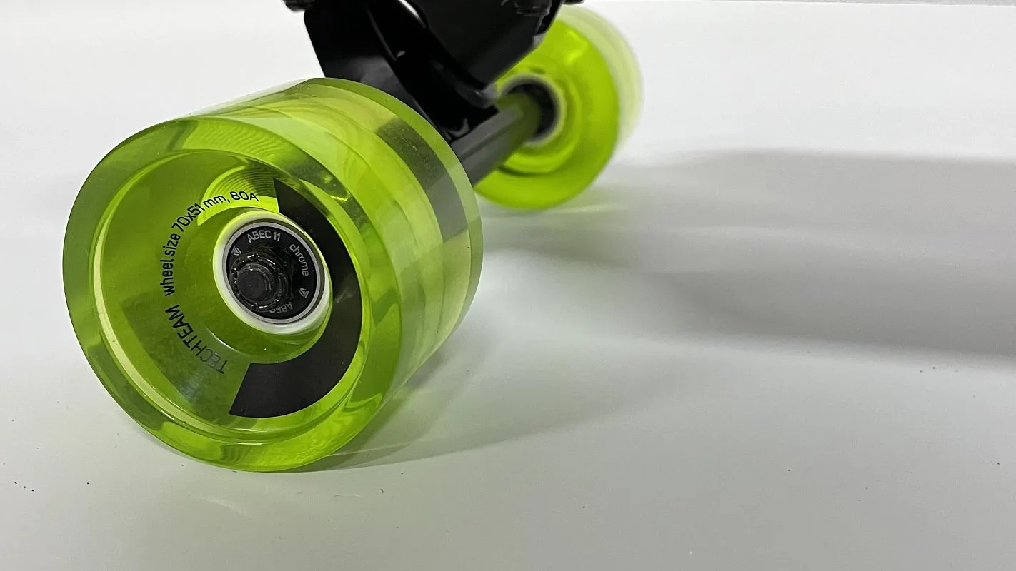 Полиуретановые колёса диаметром 70 мм и шириной 51 мм обеспечивают великолепную проходимость и отличный накат - вы будете дольше сохранять скорость без лишних толчков. Их жесткость 80А дарит хороший баланс между сцеплением и амортизацией неровностей. Центральная часть колеса выполнена из прочного полипропилена, а дополняют ходовую быстрые подшипники ABEC-11 (маркетинговое название, класс ABEC-9) из хромированной стали.