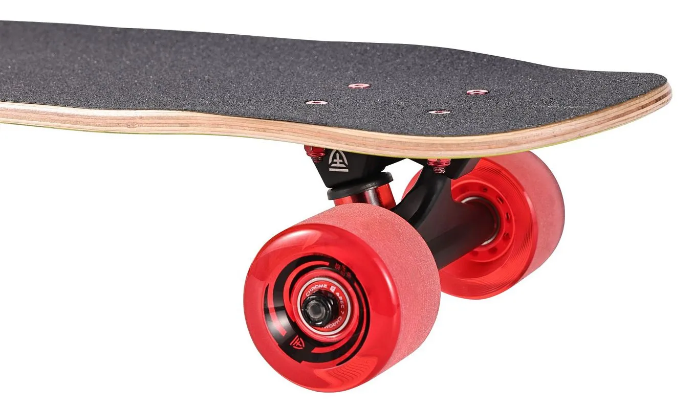 Колеса из мягкого полиуретана имеют размер 65 мм в диаметре и 45 мм ширины при жесткости 78A. Мягкий состав эффективно поглощает вибрацию и неровности асфальта, делая поездку по городу плавной, как по маслу. Небольшой вес колёс в сочетании с компактной декой сохраняет общую лёгкость скейтборда. Вращение обеспечивают подшипники ABEC-7. В комплекте стикерпак.