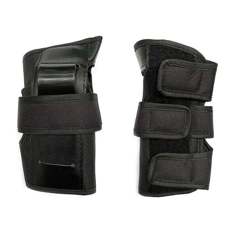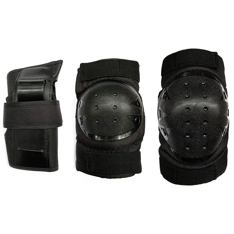 Защитные чашки выполнены из пластика, а тканевая часть в виде тканевого чулка с мягкой подкладкой. Мягкие эластичные ремешки плотно фиксируют защиту на коленях и локтях и не дают ей сползти. Кисть имеет две пластиковые вставки сверху и снизу для большей безопасности и защиты.