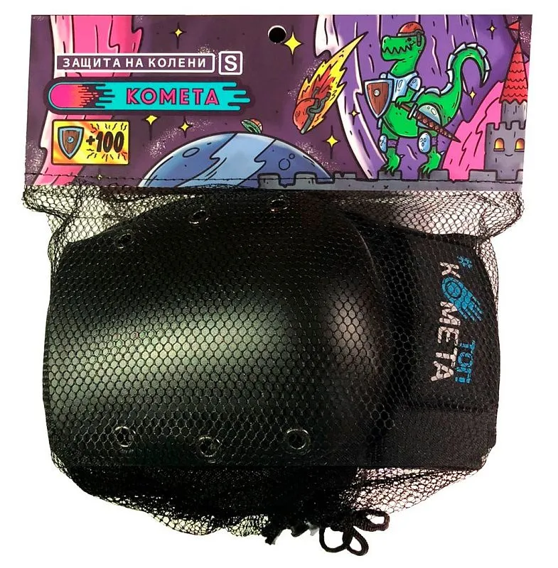 Классические парковые наколенники начального уровня. Пластиковая накладка несъемная, фиксируется заклёпками по периметру. На колене сидит плотно благодаря регулирующимся ремешкам снизу (не эластичный) и сверху (растягивается).